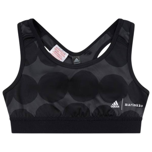 Este sujetador deportivo para niña combina la tecnología de alto rendimiento de adidas con el famoso estampado Laine (olas) de Marimekko, creado originalmente en 1965. Es la prenda perfecta para niñas y adolescentes que quieren destacar en sus entrenamientos, clases de baile o gimnasia con un estilo optimista y empoderador.