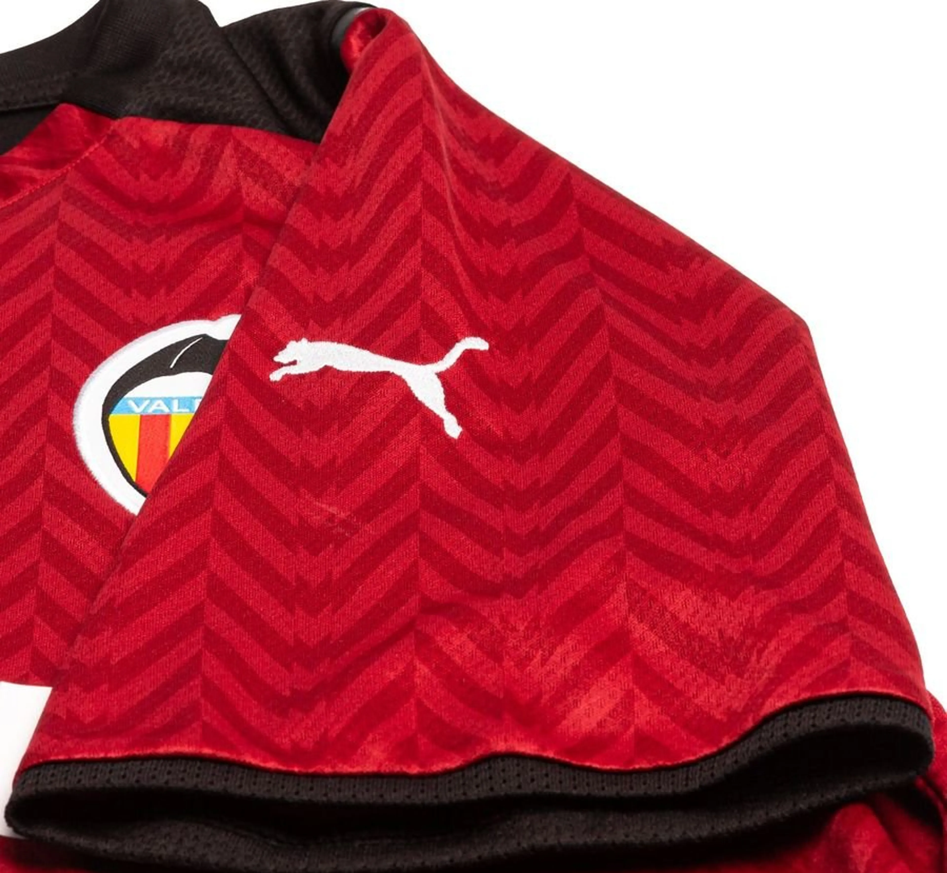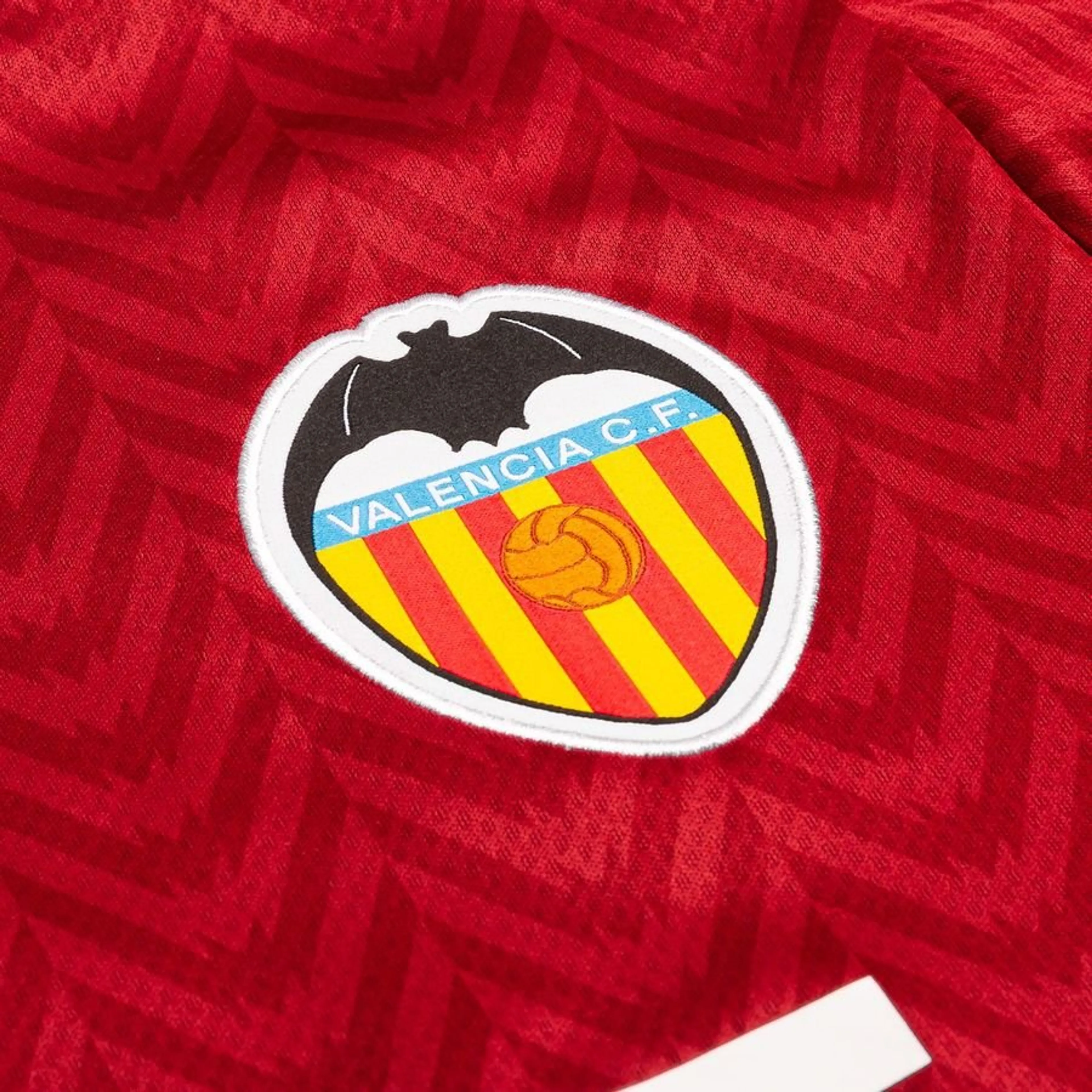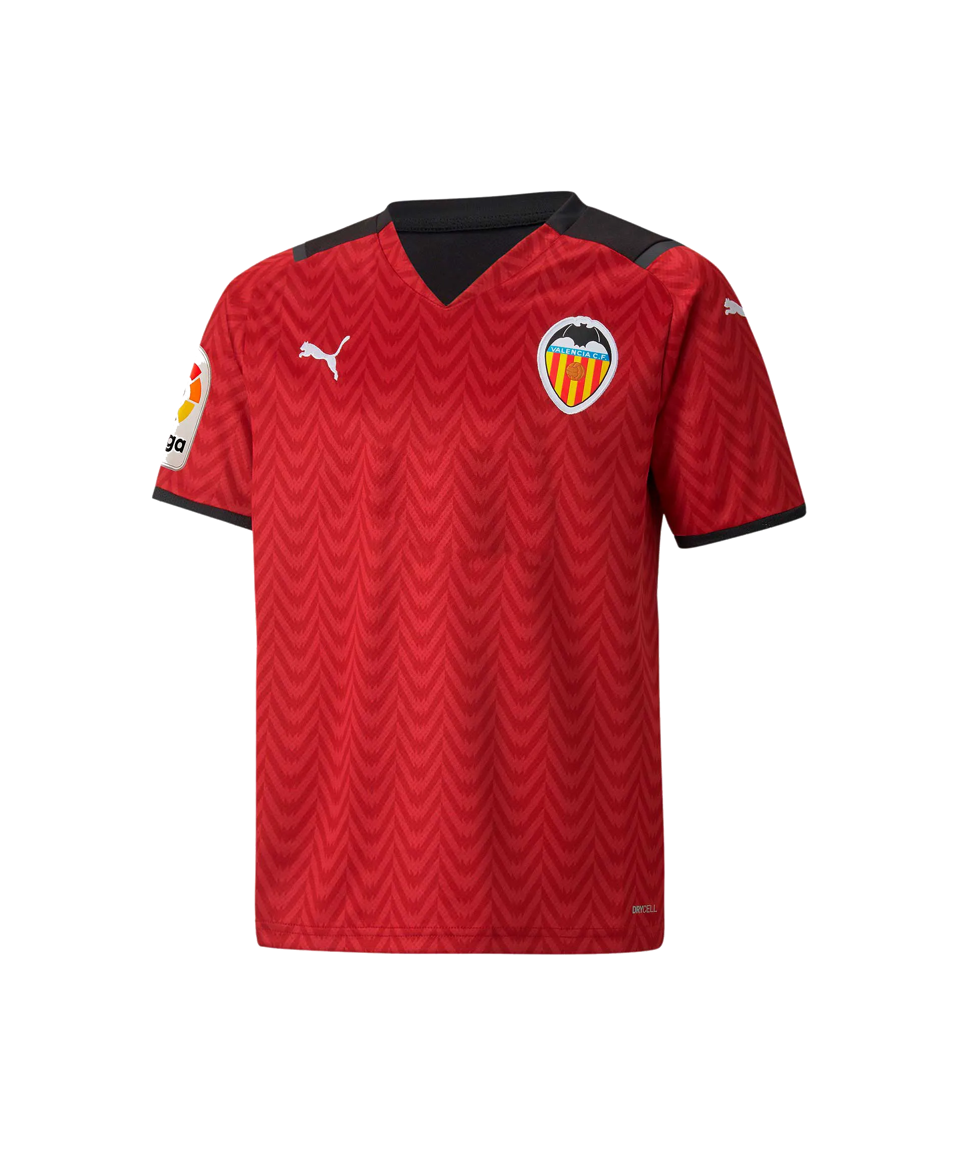 La camiseta para niño de la segunda equipación del Valencia para la temporada 2021/2022 de Puma es un homenaje a uno de la equipaciones históricas del club. En este nuevo diseño, inspirado en las mismas camisetas que usan los jugadores profesionales, recupera el rojo como color principal. Uno de los colores clásicos del conjunto ché para sus segundas equipaciones.