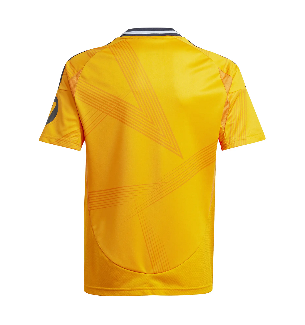 Un homenaje al ascenso de una nueva generación de futbolistas. Creado para resaltar el talento del Real Madrid, esta camiseta adidas de manga larga para exteriores destaca con una base de un naranja brillante y un diseño abstracto en forma de estrella. Presenta detalles en azul oscuro como un escudo del club bordado. La tecnología AEROREADY elimina el sudor para que los fans puedan estar en la cima de su rendimiento. Este producto está diseñado a partir de materiales 100 % reciclados. Al reutilizar materiales ya creados, contribuimos a reducir los desechos y nuestra dependencia de recursos limitados, con el fin de disminuir la huella ecológica de los productos que fabricamos.