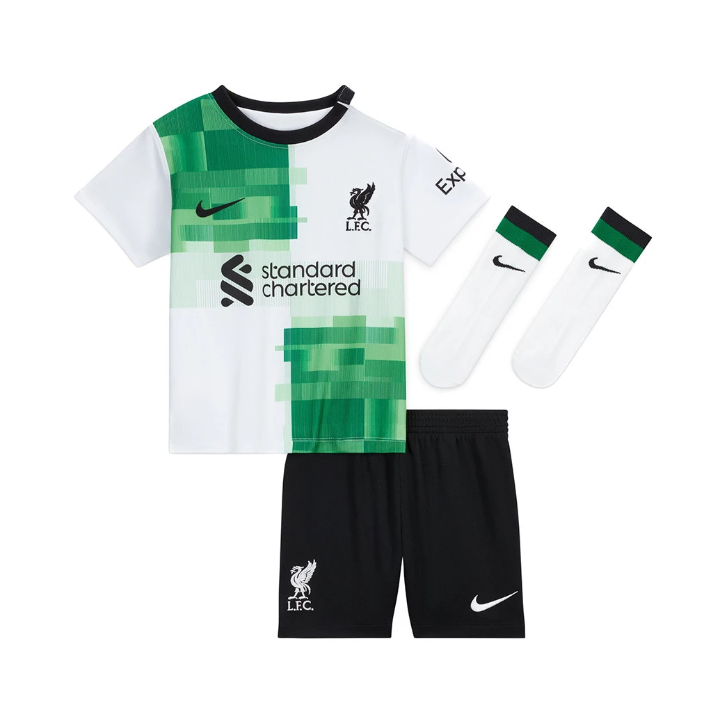 incluye una camiseta de equipo, pantalones cortos y calcetines a juego. Confeccionado en tejido ligero antitranspirante, este conjunto