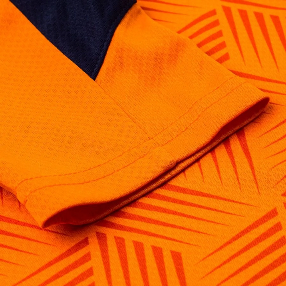 el conjunto 20/21 rinde homenaje a la reputación de la ciudad como productora de algunas de las mejores naranjas del mundo, por lo que luce un diseño en naranja, con un estampado en el frontal y detalles azul marino en los hombros.