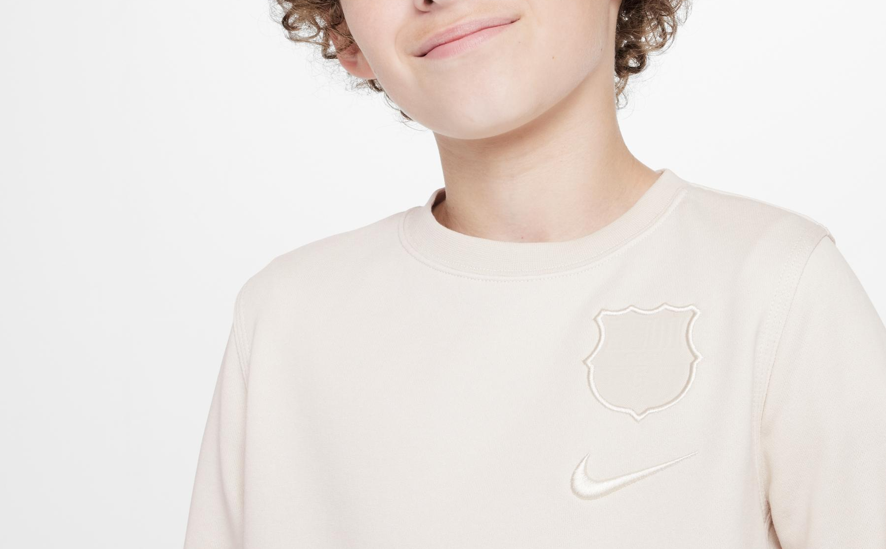 Presentamos la sudadera Nike FC Barcelona Club 2024-2025 Beige. Demuestra tu pasión por el Barça con esta cómoda sudadera. ¡Luce con orgullo tu estilo de vida del club español con esta magnífica sudadera del FC Barcelona!